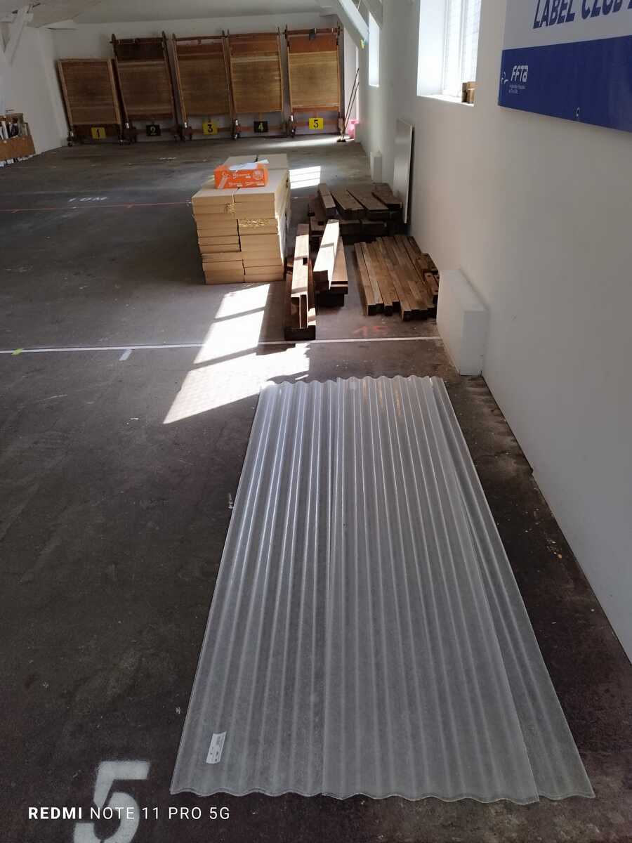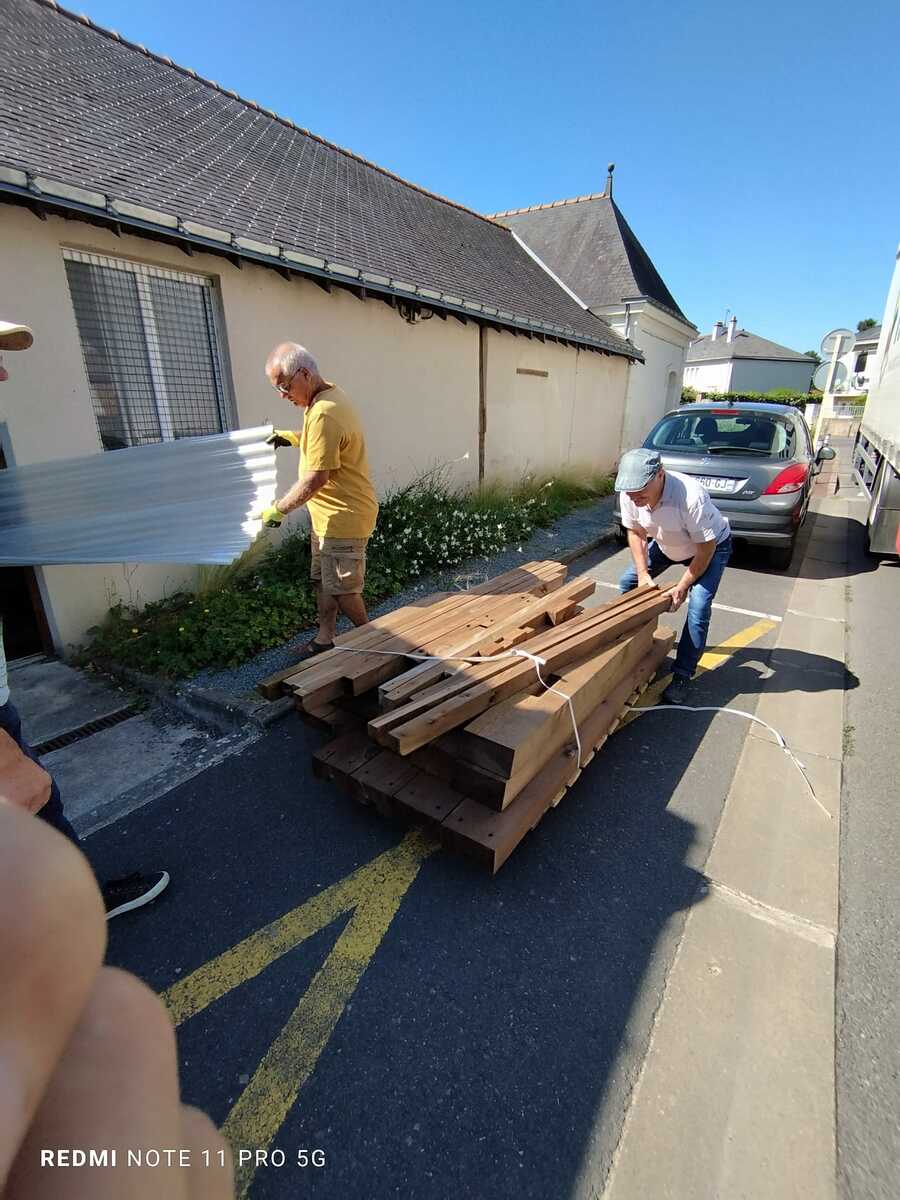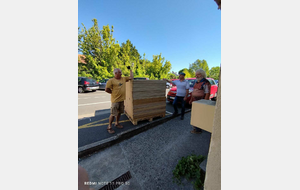 Ce jeudi 10 juillet, dans la matinée, deux nouvelles cibles et du matériel arrivaient à la salle des Palis. Ce ne sont pas moins de 6 bénévoles qui étaient là pour les recevoir et les ranger dans la salle de tir en attendant leur montage.