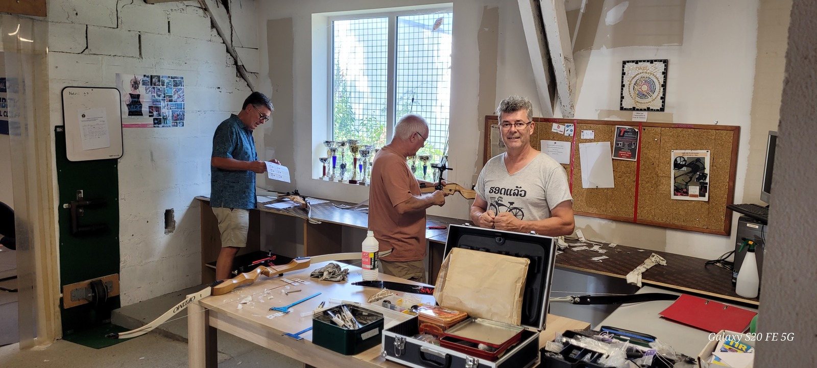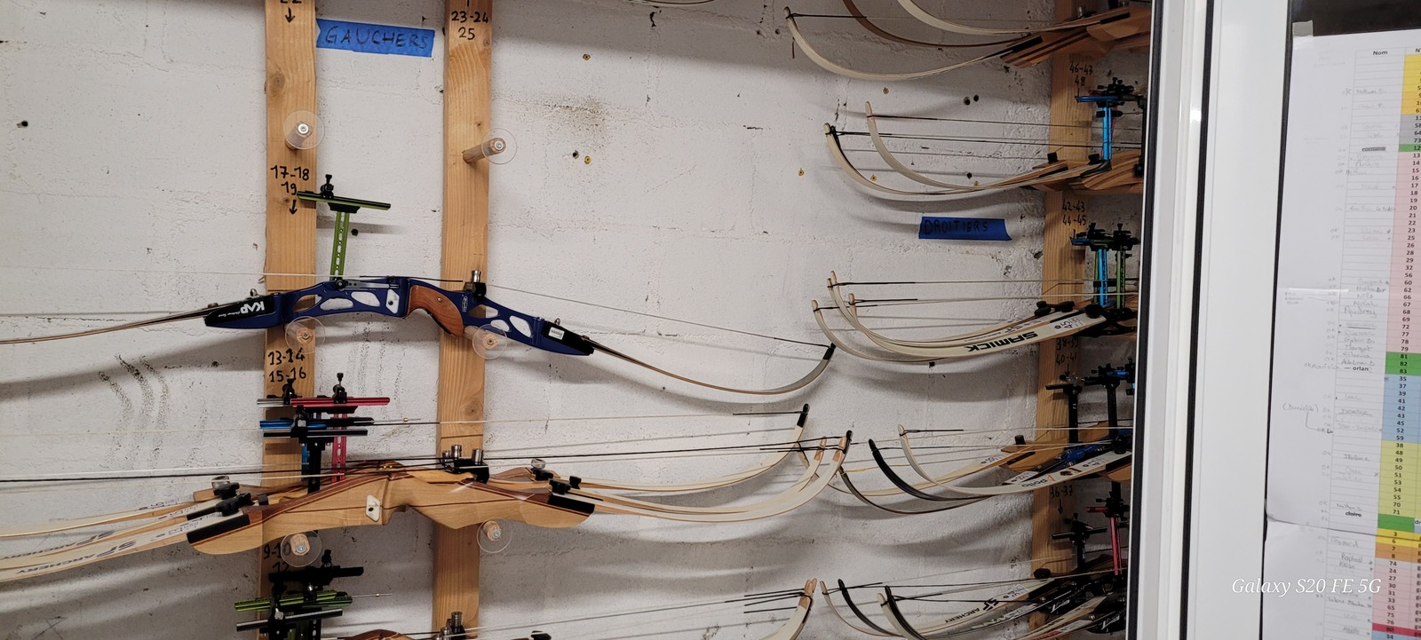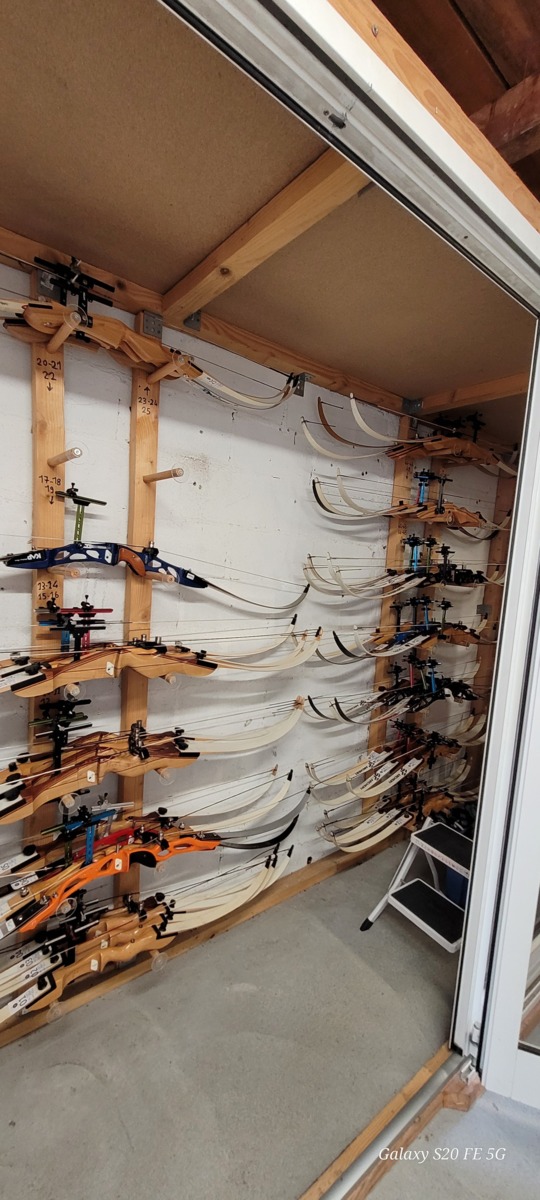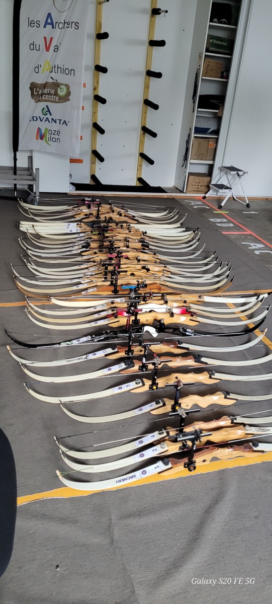 La semaine dernière, un important travail a été réalisé par nos bénévoles. En effet tous les ans, et afin de repartir sur des bases saines, le parc complet des arcs débutants est révisé. Passage en revuedes cordes, des points d'encochages, des branches abimées, des viseurs, des clickers, etc,..